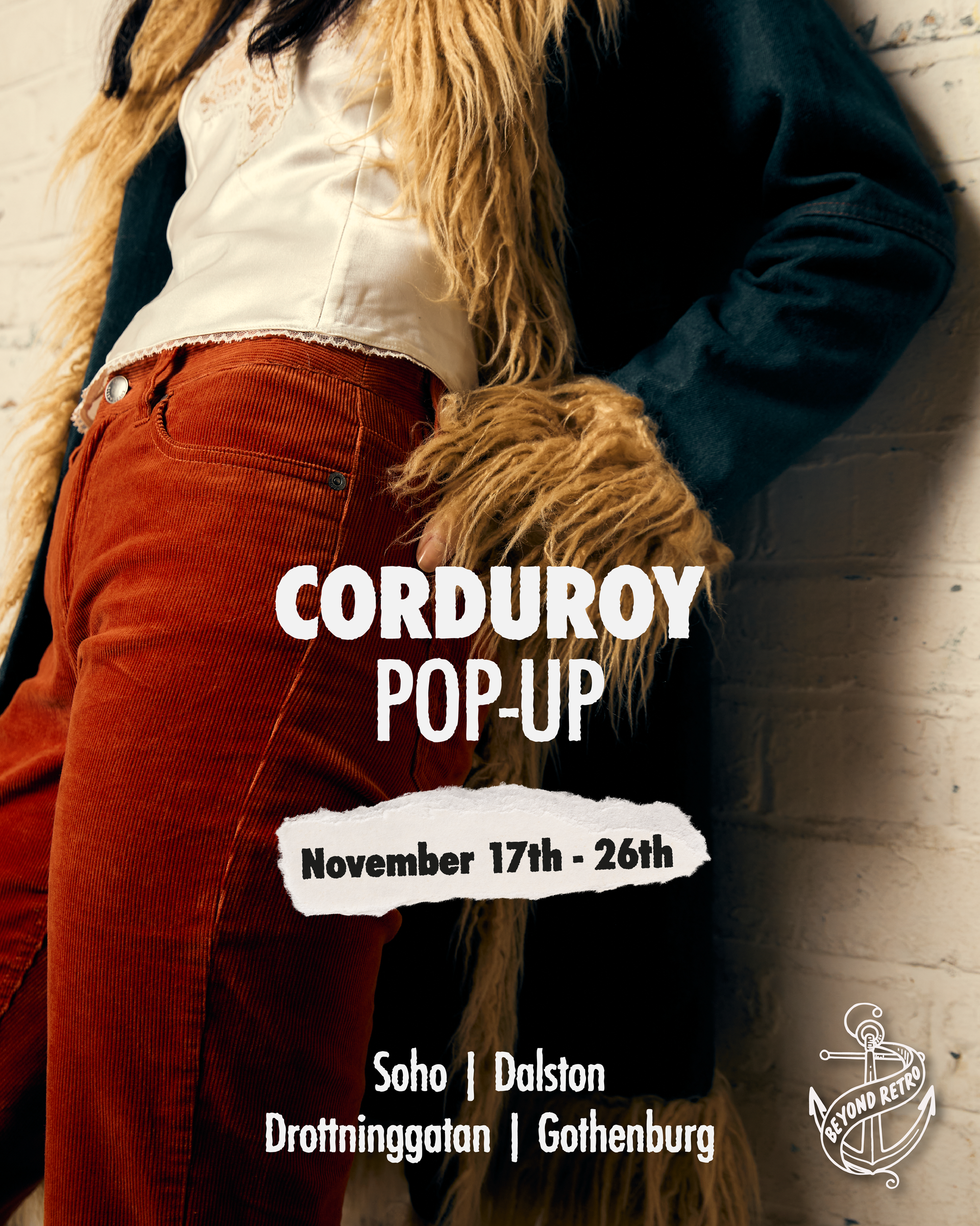 Next week, over 7,000 one-of-a-kind vintage corduroy pieces will land across select Beyond Retro stores in the UK and Nordics — a treasure trove of texture and tone ready for a new generation of wearers. Find them at Soho and Dalston in London, as well as Drottninggatan in Stockholm and Arkaden in Gothenburg.