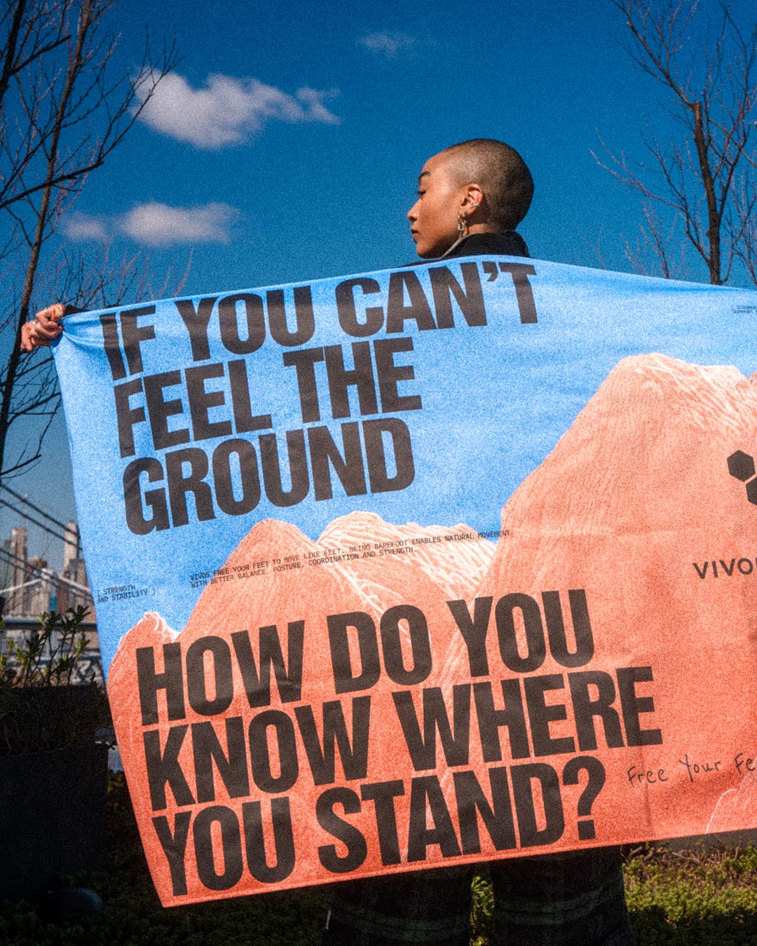 Set against elemental landscapes — wind-lashed coastlines, raw earth, open water — the imagery resists excess. There is no distraction, no over-engineering, only the body in relation to terrain. Each ambassador stands firmly grounded, holding manifesto-led statements that cut through the noise: “If you can’t feel the ground, how do you know where you stand?” It is a line that resonates beyond footwear, touching something deeper about presence, certainty, and belonging.This is not positioned as a traditional product campaign. It is framed as a collective call — a subtle but pointed rejection of what Vivobarefoot terms “big shoe” culture, with its emphasis on cushioning, control, and disconnection from natural biomechanics. In its place, the brand advocates for sensory feedback, strength, and adaptability — a return to instinct over intervention.